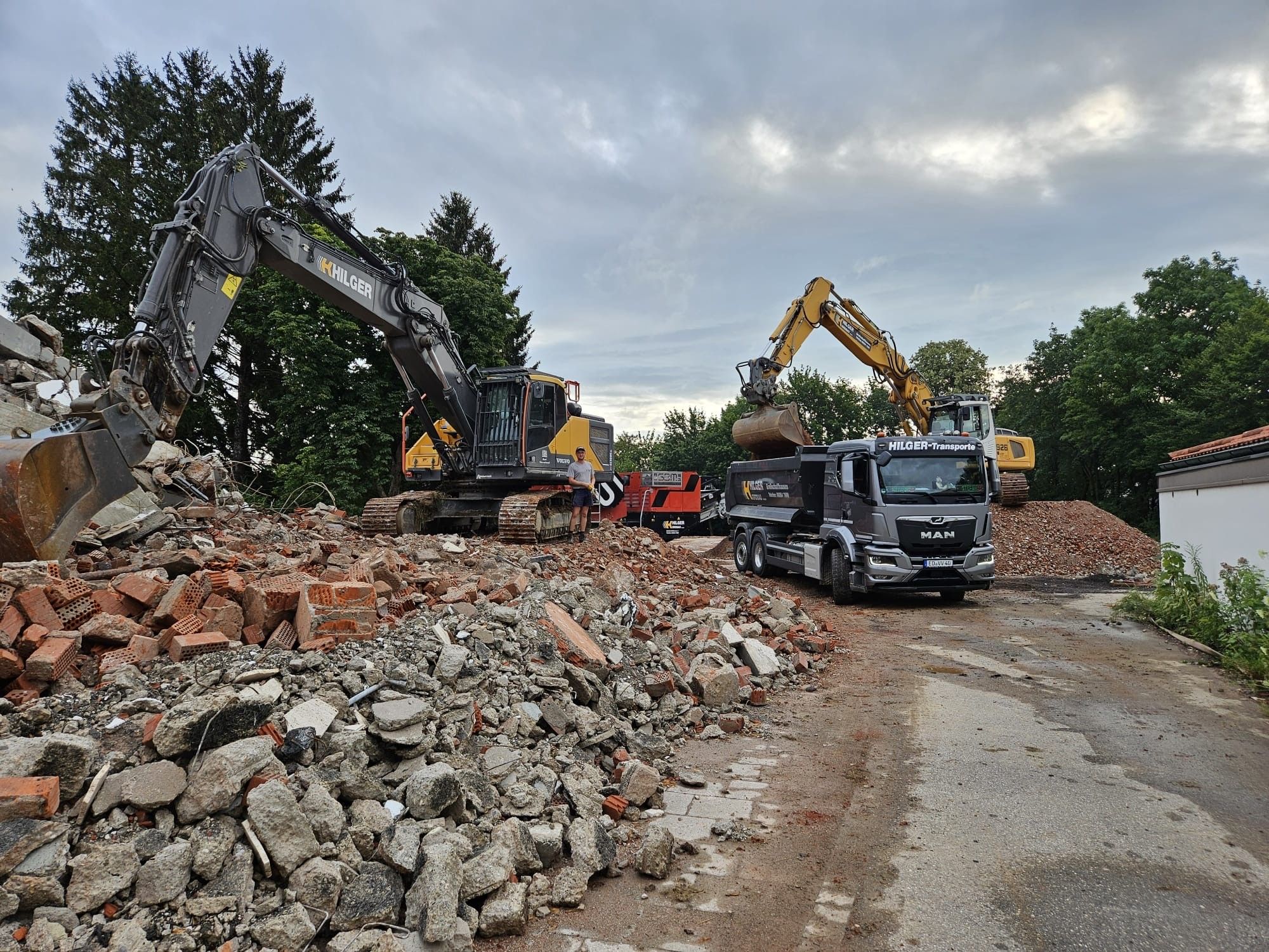 Neubauprojekt der Firma Maier Bau GmbH Die Abbrucharbeiten sind nun fast vollständig abgeschlossen, nun starten wir das Recycling der Baustoffe, welche nach dem Aushub für den Neubau wiederverwendet werden.
