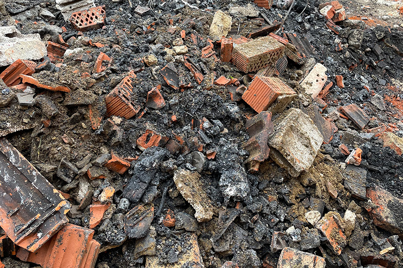 Bauschutt verunreinigt mit Brandrückständen