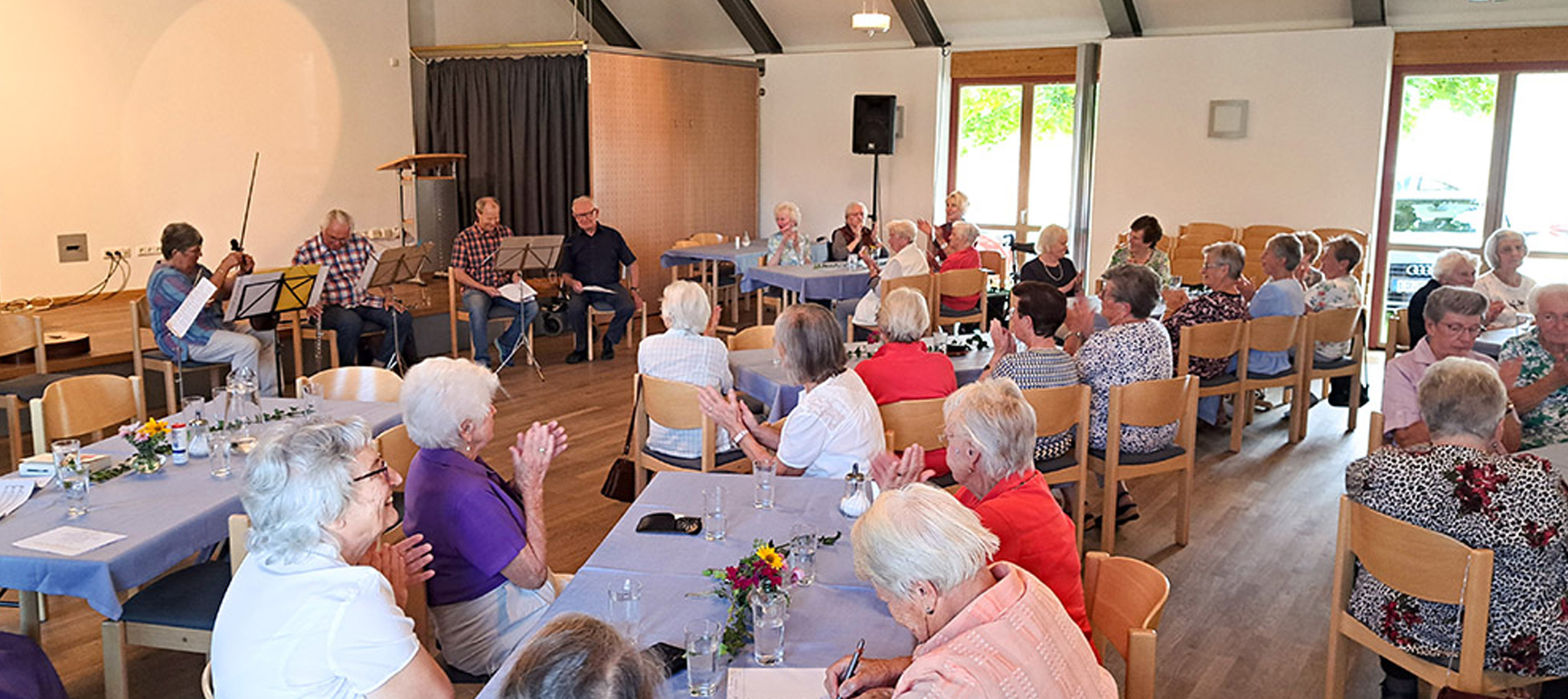 Rauskommen, Zusammenkommen, Unterhaltung ist die Absicht des vierzehntägigen Seniorenprogramms, das im Pfarrzentrum stattfindet und bei dem Kaffee und Kuchen eben nie fehlen dürfen. Die Feste im Jahreskreis werden dabei gefeiert, wie am 18. Oktober Kirchweih, mit Alois Tremmel, der einiges zu Bräuchen um diesen Feiertag erzählt. Vorträge zur Ortsgeschichte oder nützlichen Themen stehen ebenfalls auf dem Programm und zweimal im Jahr wird zur „Kleinen Kirchenfahrt“ aufgebrochen. Zuletzt besuchte man die Klosterkirche Höglwörth, in der Kirchenmaler Ludwig Keilhacker an der Renovierung beteiligt war und vor Ort eine Führung gab. Der Geldbeutel der Teilnehmer wurde durch Spenden der Firma Hilger aus Großschaffhausen und Mano Amigo geschont. „Unser Angebot richtet sich an die, die am wenigsten rauskommen“, sagt Marianne Maier, die noch heute Vorsitzende der 20 engagierten Frauen ist. Seit mehr als 40 Jahren organisiert die nun 84-jährige den Sozialkreis. „So genau möchte ich nicht nachrechnen“, lacht sie über das Jahrzehnte lange Engagement. Schließlich war sie nicht sonderlich begeistert, als Pfarrer Zeitler sie darum bat, als „Übergangslösung“ dieses Amt zu übernehmen. Ihre erfolgreiche Arbeit machte sie aber zum Gesicht des Sozialkreises, so Hubert Kemper, ehemaliger Taufkirchener Mittelschullehrer, der mit „Senioren musizieren für Senioren“ das Septembertreffen im Pfarrheim untermalte. „Etwas so stabil zu installieren, wie hier den Sozialkreis, ist nicht leicht. Frau Maier versteht es, die Leute anzusprechen und sie hat ein Geschick dafür und kommt gegen Widerstände souverän hinweg“. Stets ist Marianne Maier auch auf der Suche nach neuen Gesichtern im Sozialkreis. Maria Lechner ist eines davon. Sie half in der Firmgruppe ihrer Tochter mit, begegnete so dem Sozialkreis im Pfarrheim und kann festhalten: „Es ist für den Einzelnen nicht viel Arbeit, man bäckt hin und wieder einen Kuchen für den Seniorennachmittag oder schenkt dort Kaffee aus, das ist nicht dramatisch“. Mit solchen kleinen Beiträgen leisten die Frauen einen großen Beitrag, um soziale Strukturen in der Gemeinde stabil zu halten.